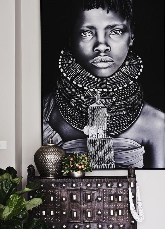 Exemplos desses objetos são máscaras de tribos africanas, tapetes orientais, cestos de bambu com plantas naturais, instrumentos musicais de outras culturas, têxtil artesanal, papeis de parede com estampas de animais, tapetes, vasos, esculturas, telas e quadros africanos ou orientais são clássicos e caem muito bem para dar destaque, almofadas que trazem aconchego, cadeiras com propostas inusitadas etc.