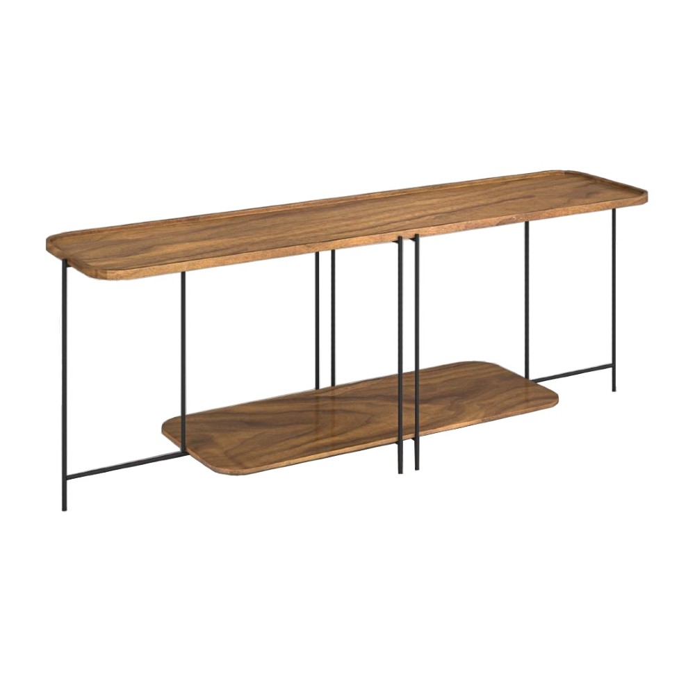 Material: Estrutura em aço carbono fosca acetinado e tampo em laminado de madeira