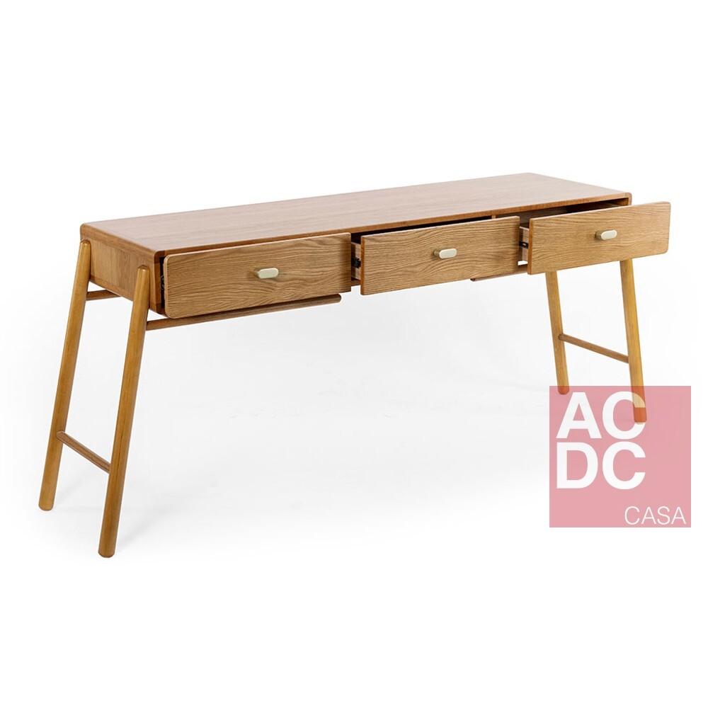 Material: Pés torneados em madeira maciça Tauari e gaveteiro de MDF revestido com lâmina natural de madeira. Os puxadores são em madeira laqueada, o interior das gavetas em MDF com revestimento melamínico e as corrediças são telescópicas. Sua estrutura cria uma elevação nas gavetas, gerando uma sensação de alongamento e flutuação. 03 gavetas