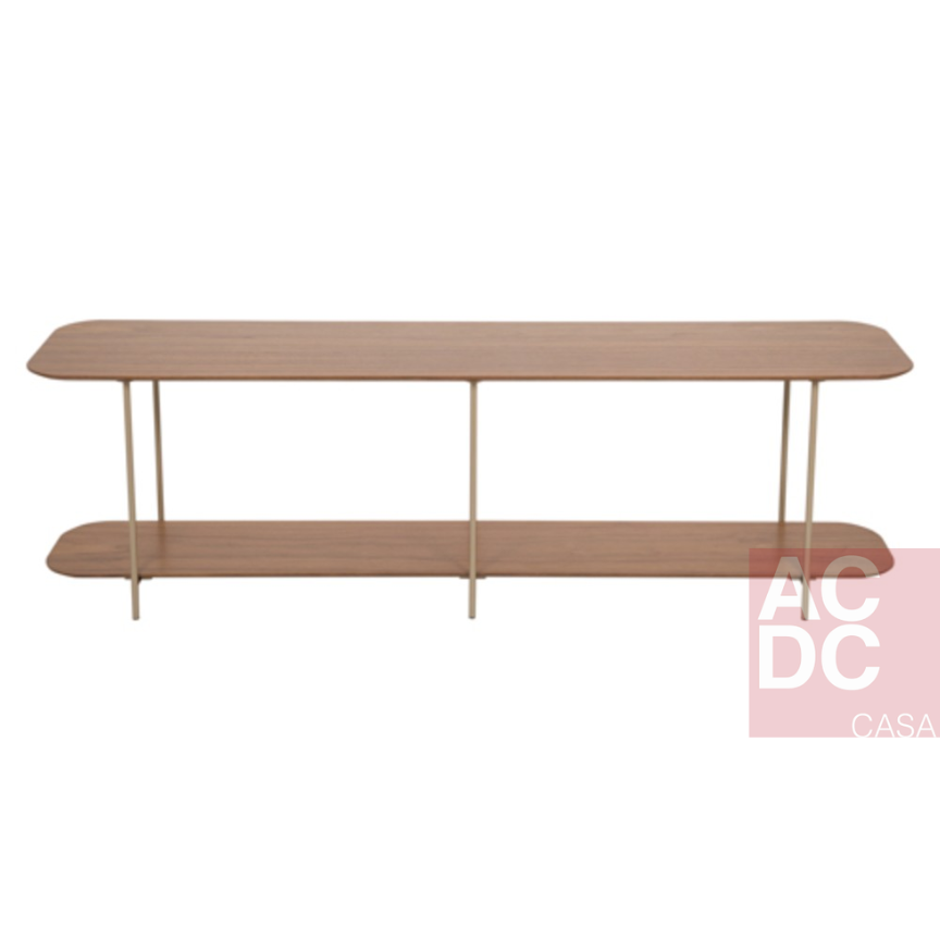 Material: Estrutura em metal pintado. Tampos em madeira carvalho com canto garrafa.