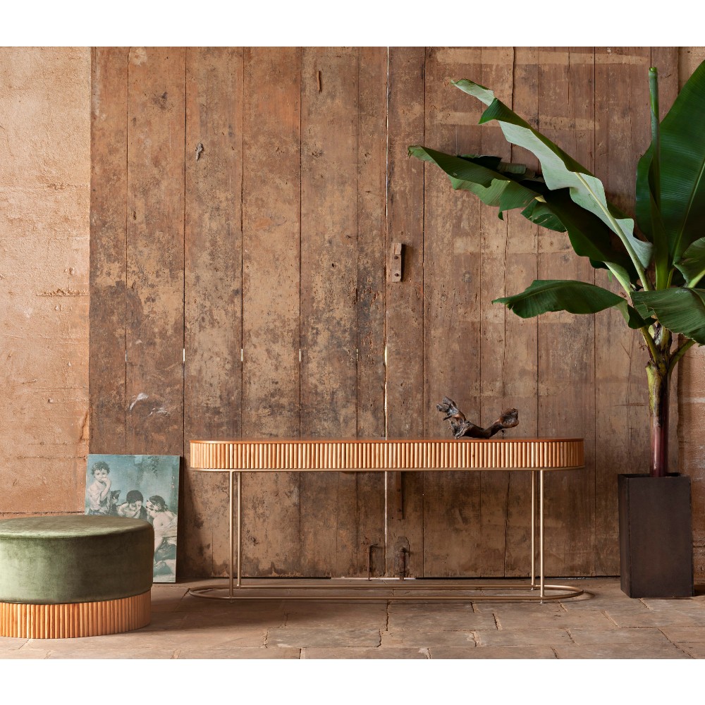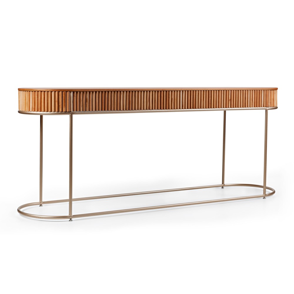 Material: Tampo laminado, Canelado em madeira. Base em metal.