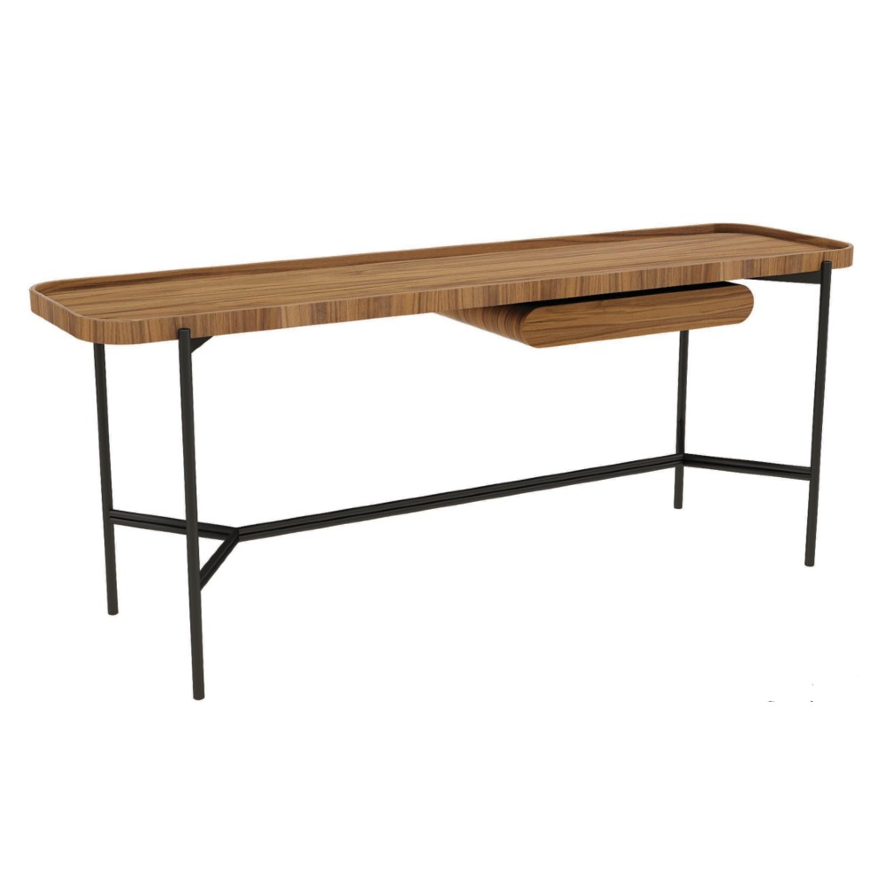 Material: Tampo em madeira cinamomo e estrutura em aço carbono acetinado