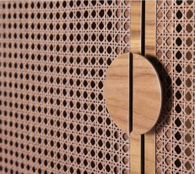Material: Madeira, portas com detalhes em palha e dobradiças com stop control