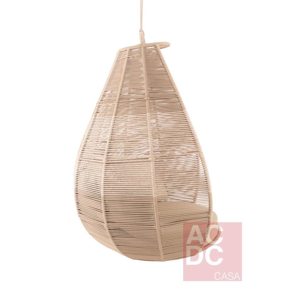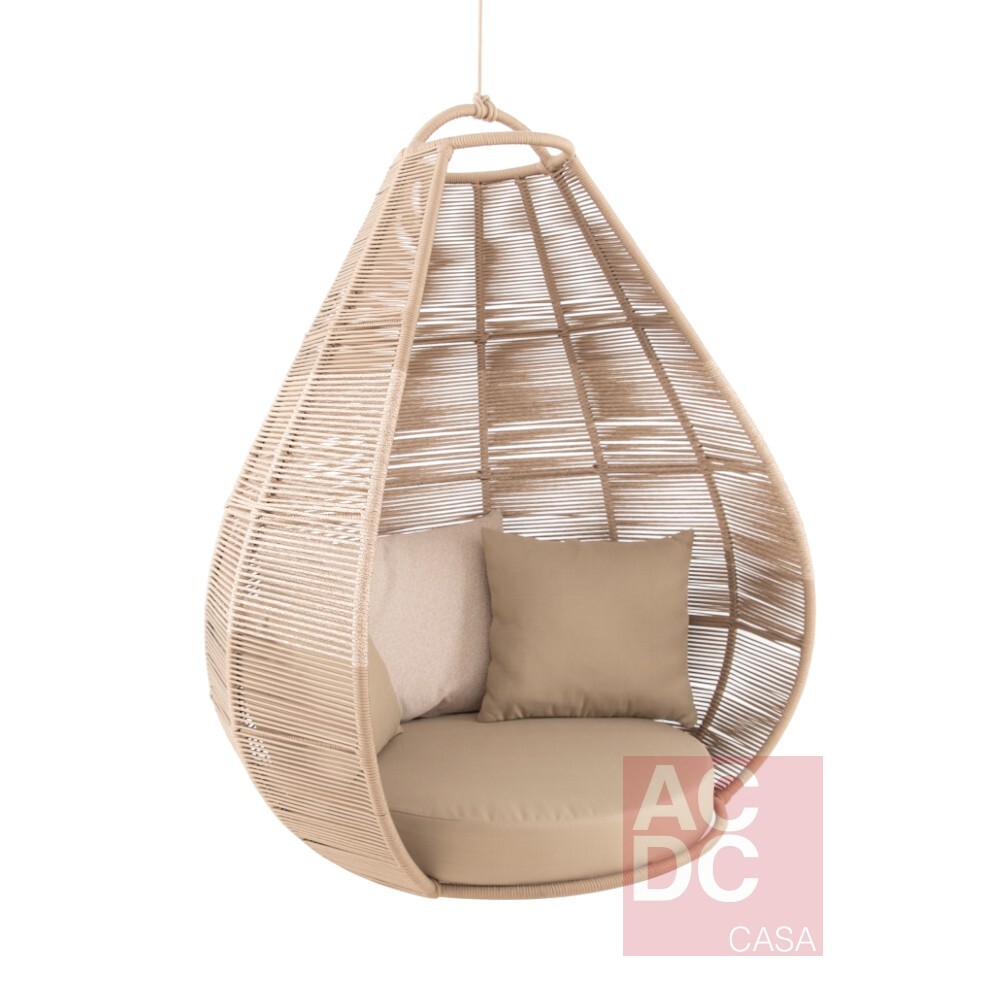 Material: Alumínio com pintura eletrostática: acabamento que repele água, ideal para áreas externas. Corda náutica e tecido: alta durabilidade e resistência. Acompanha corda e mosquetão.