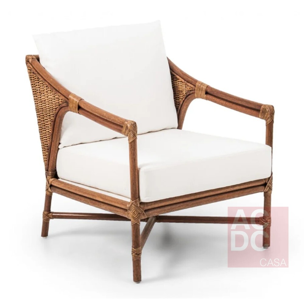 Material: Estrutura em alumínio com pintura eletrostática, com um trabalho artesanal em fibra sintética com proteção UV. Estofada em tecido repelente à água. Possui ótima durabilidade e resistência a fatores climáticos e proteção UV.