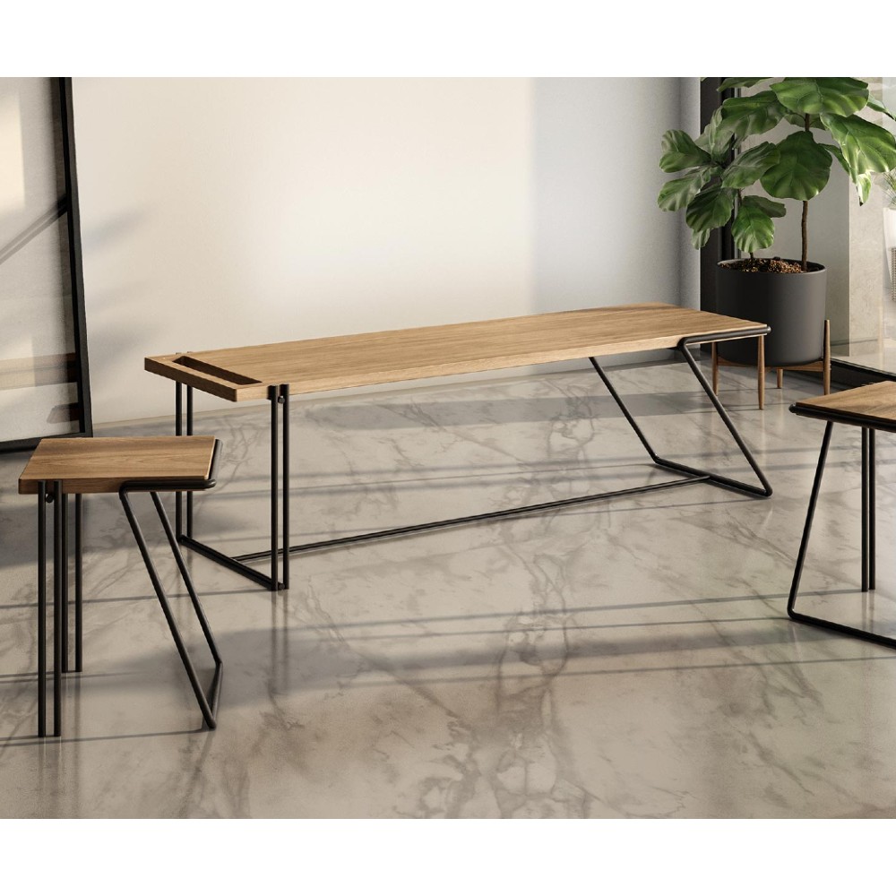 Material: Banco em estrutura em metal e tampo em madeira maciça