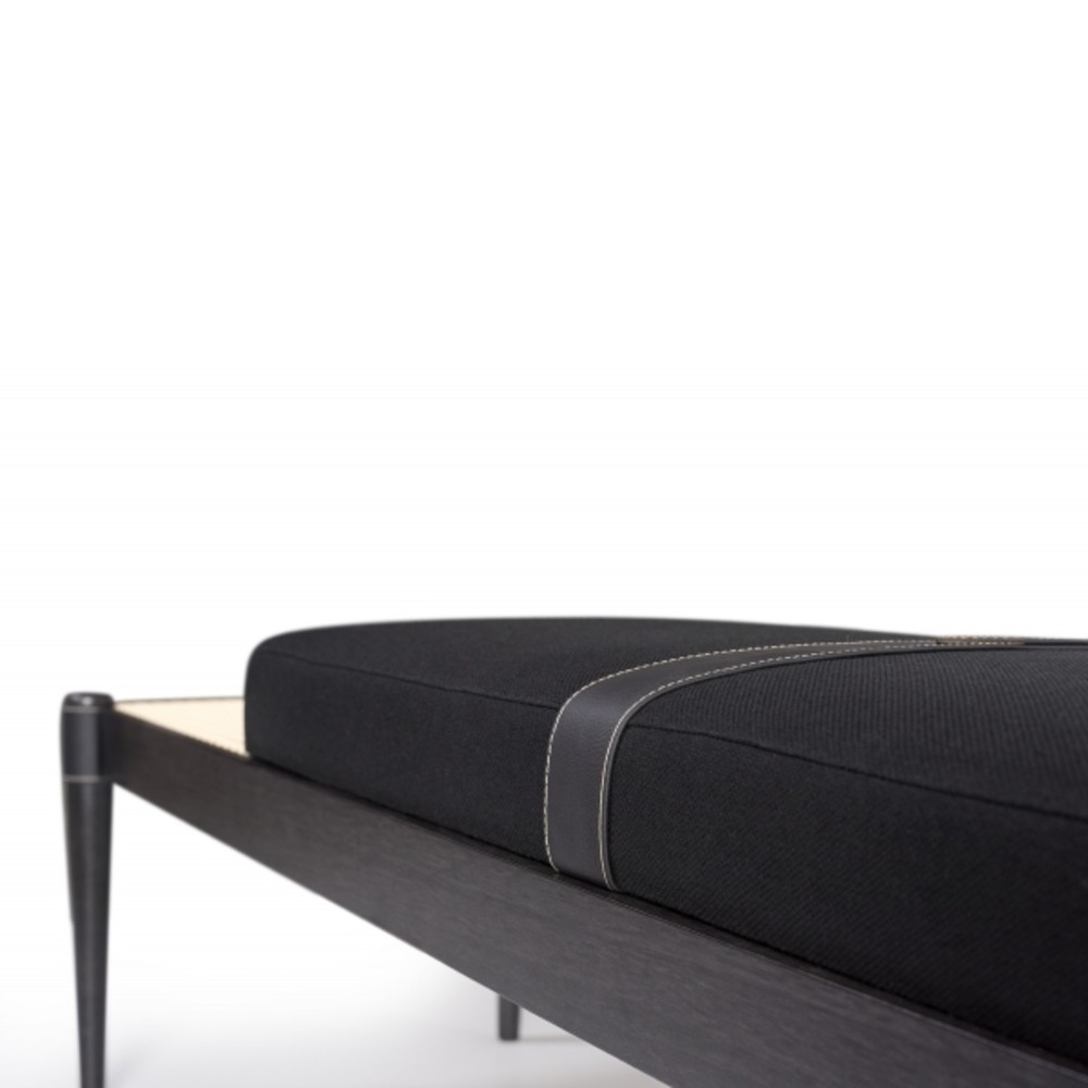 Peça com traços minimalistas e design caloroso, detalhes em cintas de couro e palha portuguesa trazem memória afetiva e sofisticação para a peça.