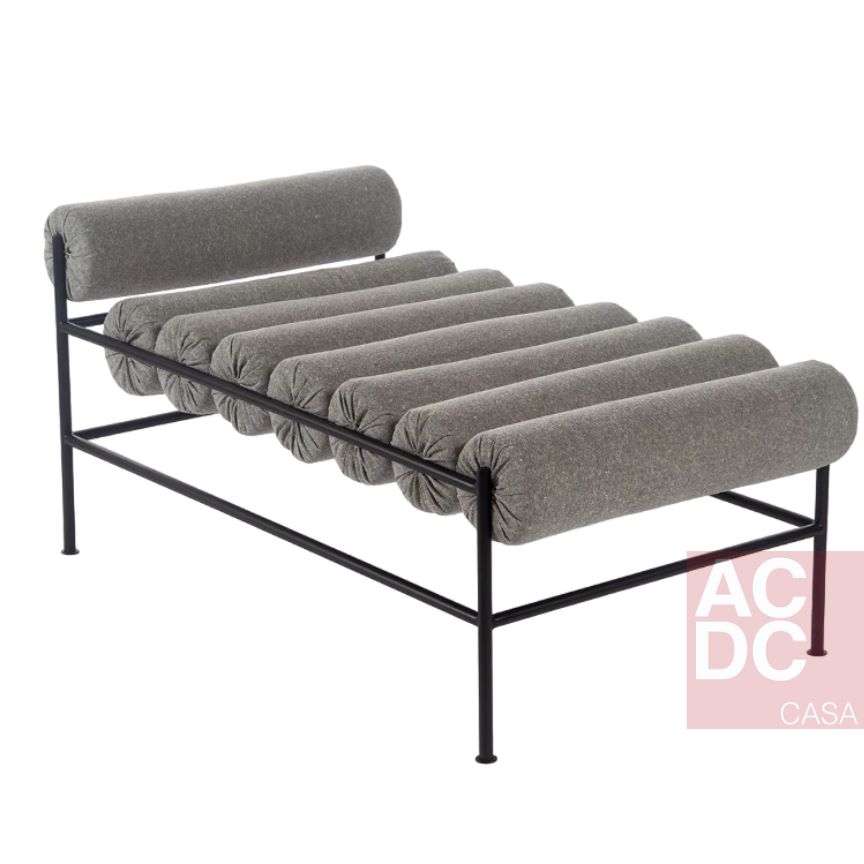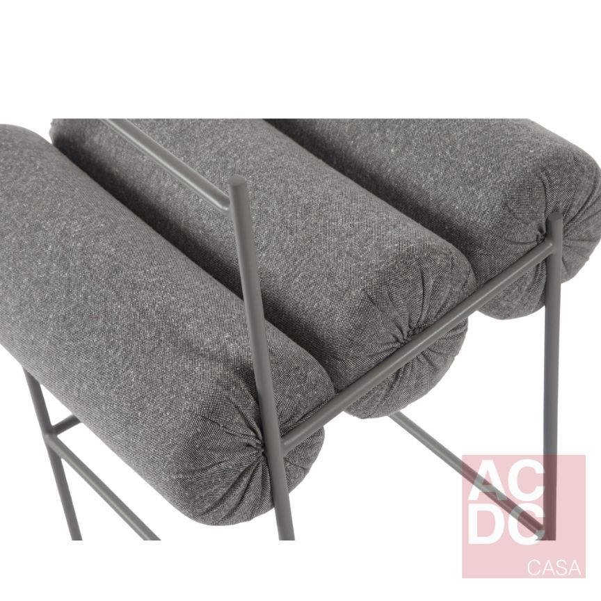 Material: Encosto e assento formado por rolos, revestidos em tecido tramado. Estrutura e Pés em aço carbono laqueado preto