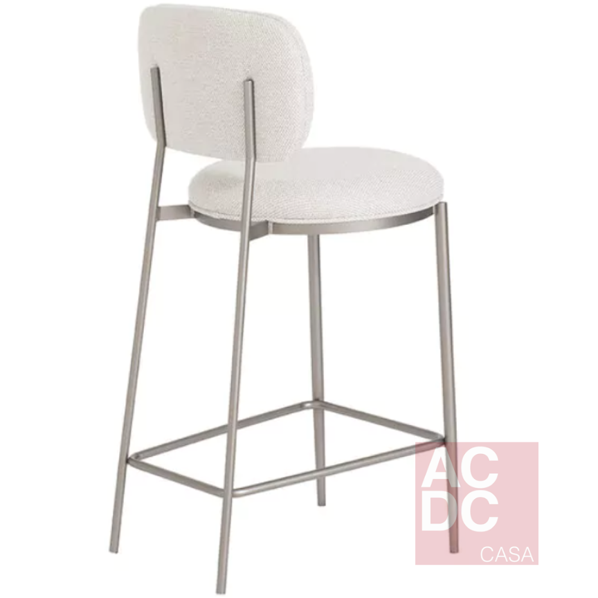 Material: Concha em madeira multiplatinada reflorestada, revestida com espuma densidade 28. Estrutura em tubo de aço carbono com pintura automotiva no tom Prata. Revestimento com tecido toque em linho Cru