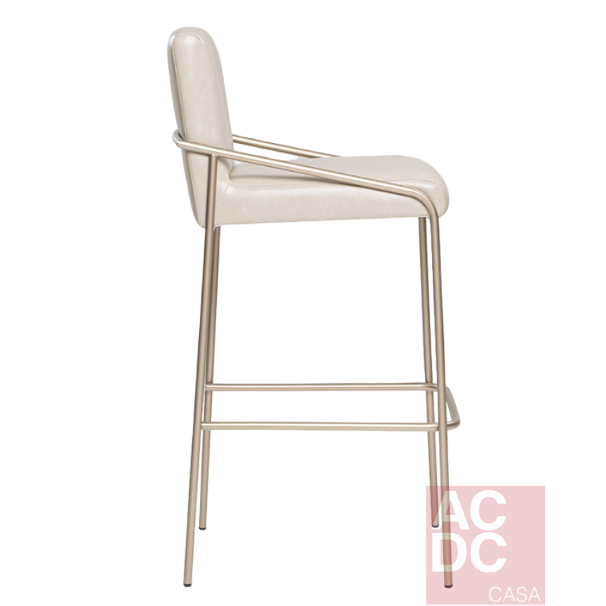 LEVEZA E SINGULARIDADE SÃO OS TRAÇOS DA BANQUETA COM TRAÇOS MINIMALISTAS, QUE SURGEM A PARTIR DE UMA COMBINAÇÃO SUAVE DE MATERIAIS DE ALTO PADRÃO ESTÉTICO.