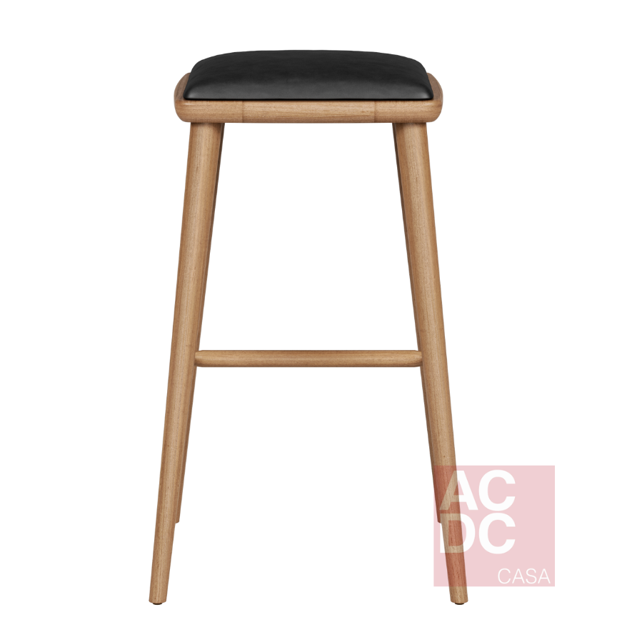 Estrutura em madeira maciça, assento estofado.                                                                    A madeira usada é de reflorestamento, e a marca também busca outras matérias-primas sustentáveis para a criação dos seus móveis. Qualidade, consciência e conforto, tudo junto. Altura ideal para o tampo da bancada deve ser de aproximadamente 30 centímetros acima do assento da banqueta.