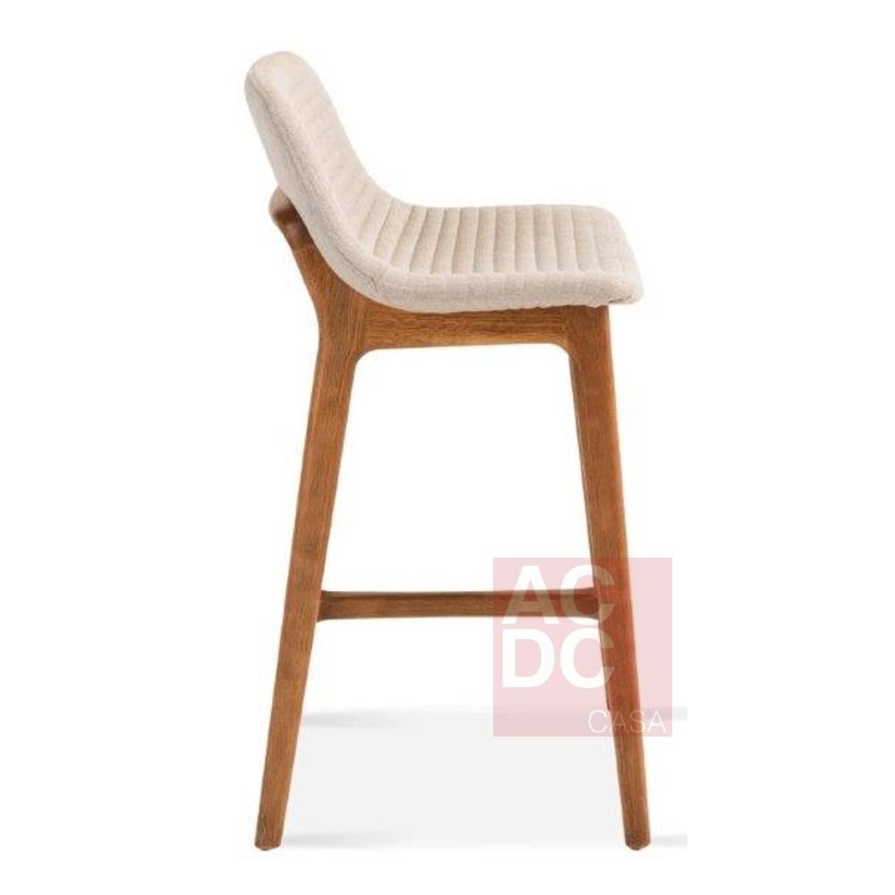 Material: Estrutura em madeira maciça, encosto e assento em compensado multilaminado anatômico, espuma d-28 20 mm, apoio dos pés em madeira