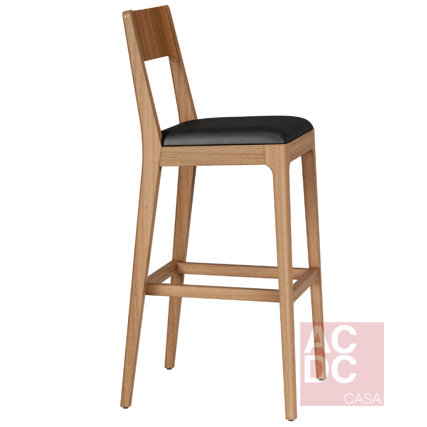 Estrutura em madeira maciça, assento estofado e encosto multilaminado. A madeira usada é de reflorestamento, e a marca também busca outras matérias-primas sustentáveis para a criação dos seus móveis. Qualidade, consciência e conforto, tudo junto. A Altura ideal para o tampo da bancada deve ser de aproximadamente 30 centímetros acima do assento da banqueta.