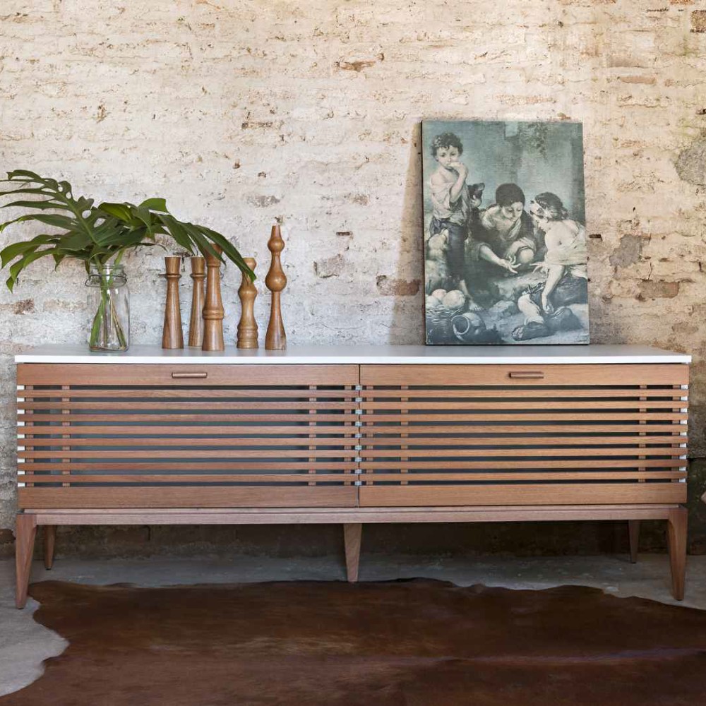 Material: Base de madeira, corpo laqueado e portas laminadas