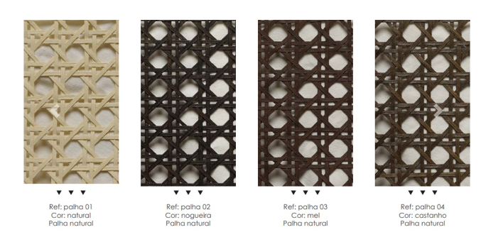 Material: Madeira e palha. Frente das portas em palha, dobradiças com stop control, parte interna com prateleiras.