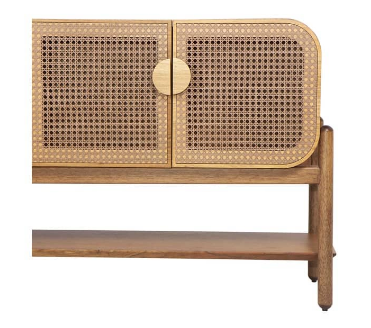 Material: Madeira e palha. Frente das portas em palha, dobradiças com stop control, parte interna com prateleiras