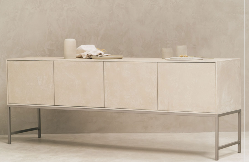 Material: Estrutura em madeira, em laca, base em aço carbono pintado, com prateleiras.