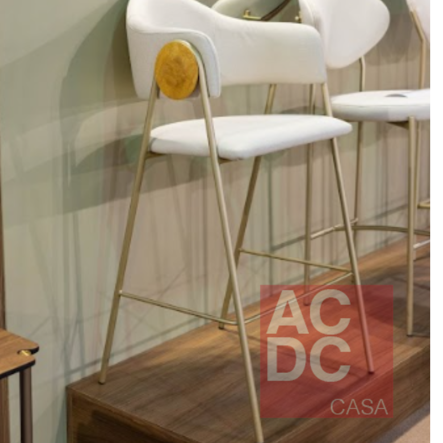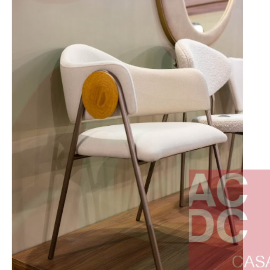 Material: Cadeira com assento e encosto estofado. Estrutura em aço carbono pintado. Bolacha em madeira cerejeira natural.