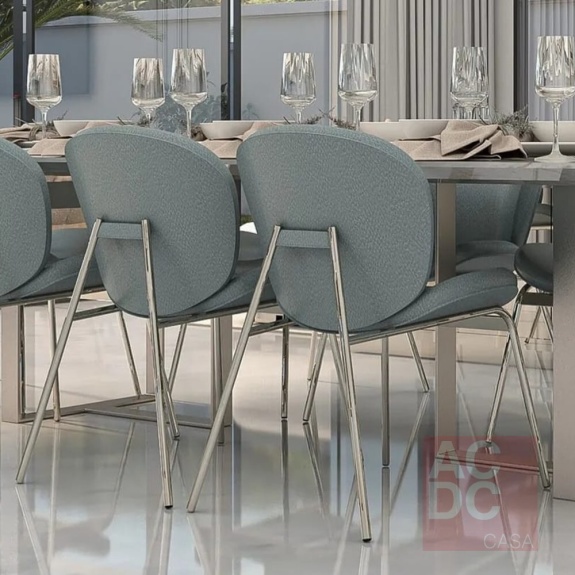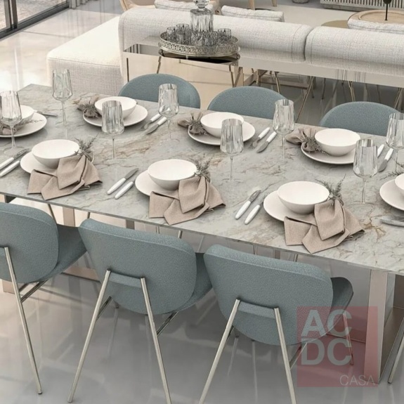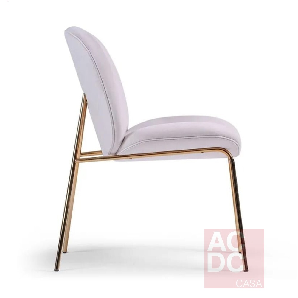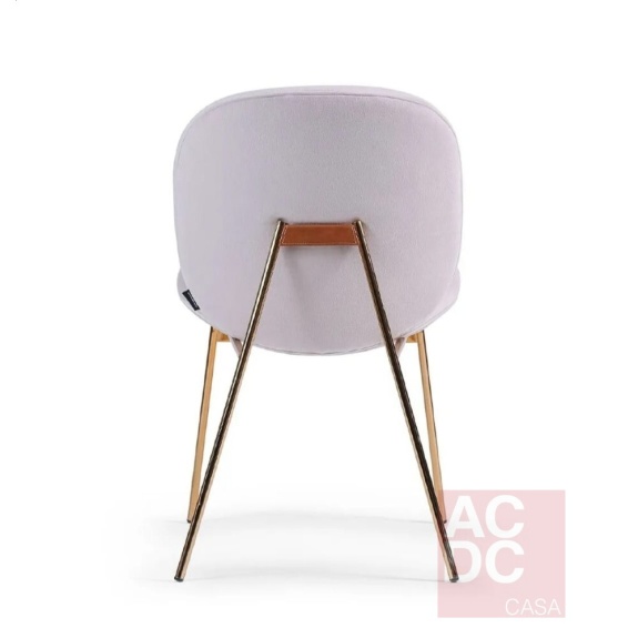 Material: Base em aço inox dourado, estrutura em chapa multilaminada e estofada em linho cru