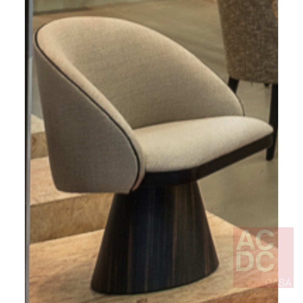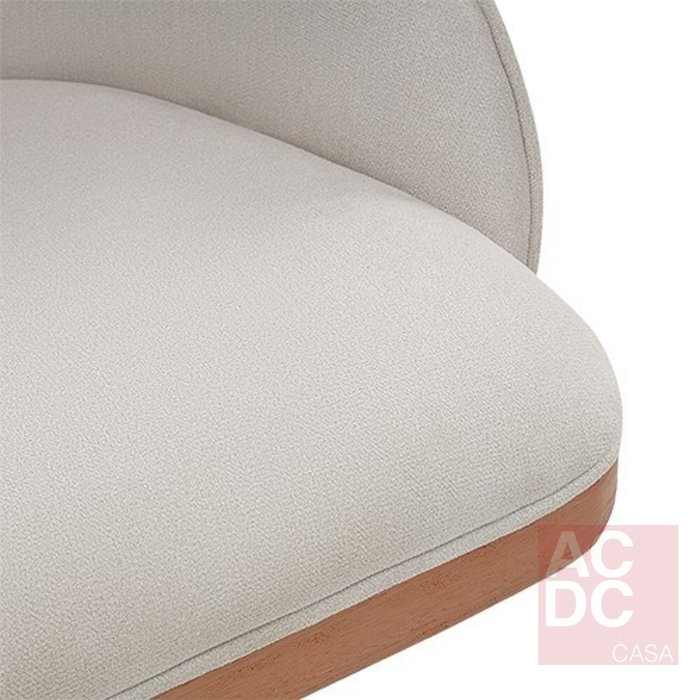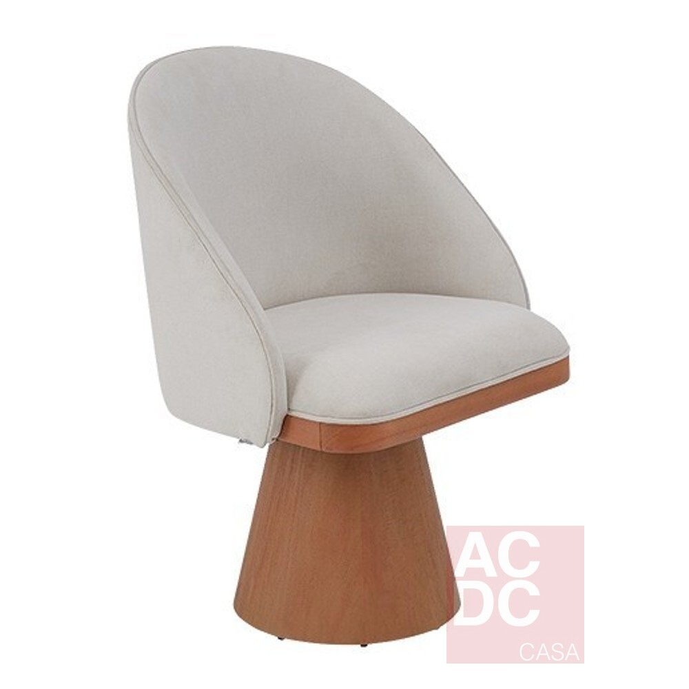Material: Estrutura em madeira, encosto e assento estofados em tecido e base madeira giratoria