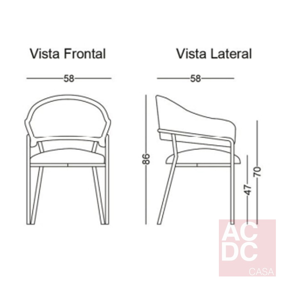 Medida Unitária: Altura: 86 | Largura: 58 | Profundidade: 58 cm | Altura Assento: 47 cm