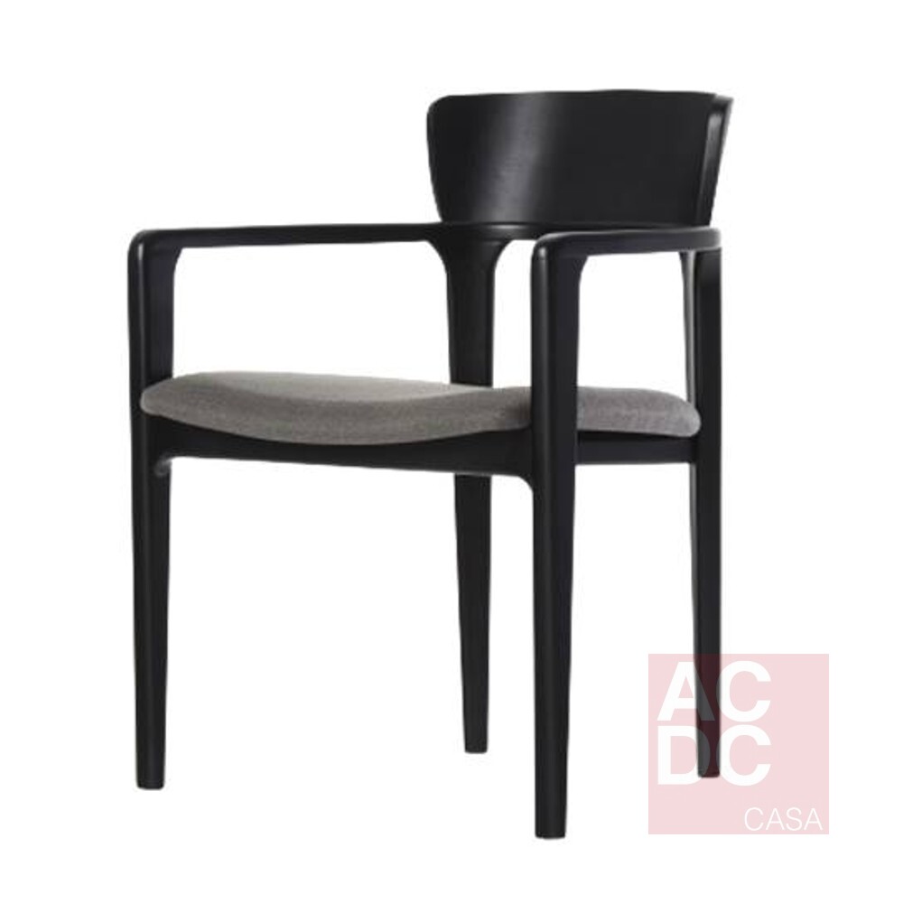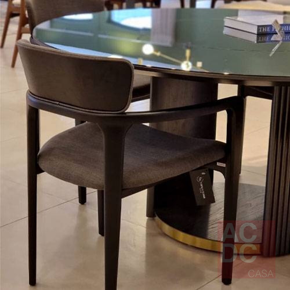 Material: Estrutura em madeira, assento e encosto em multilaminado estofado, com costas em lâmina natural.
