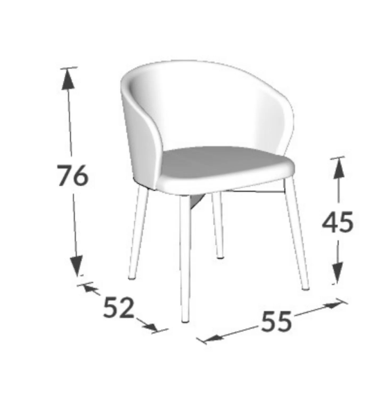 Medida Unitária: Altura: 76 | Largura: 55 | Comprimento: 52 cm | Altura do Assento: 45 cm