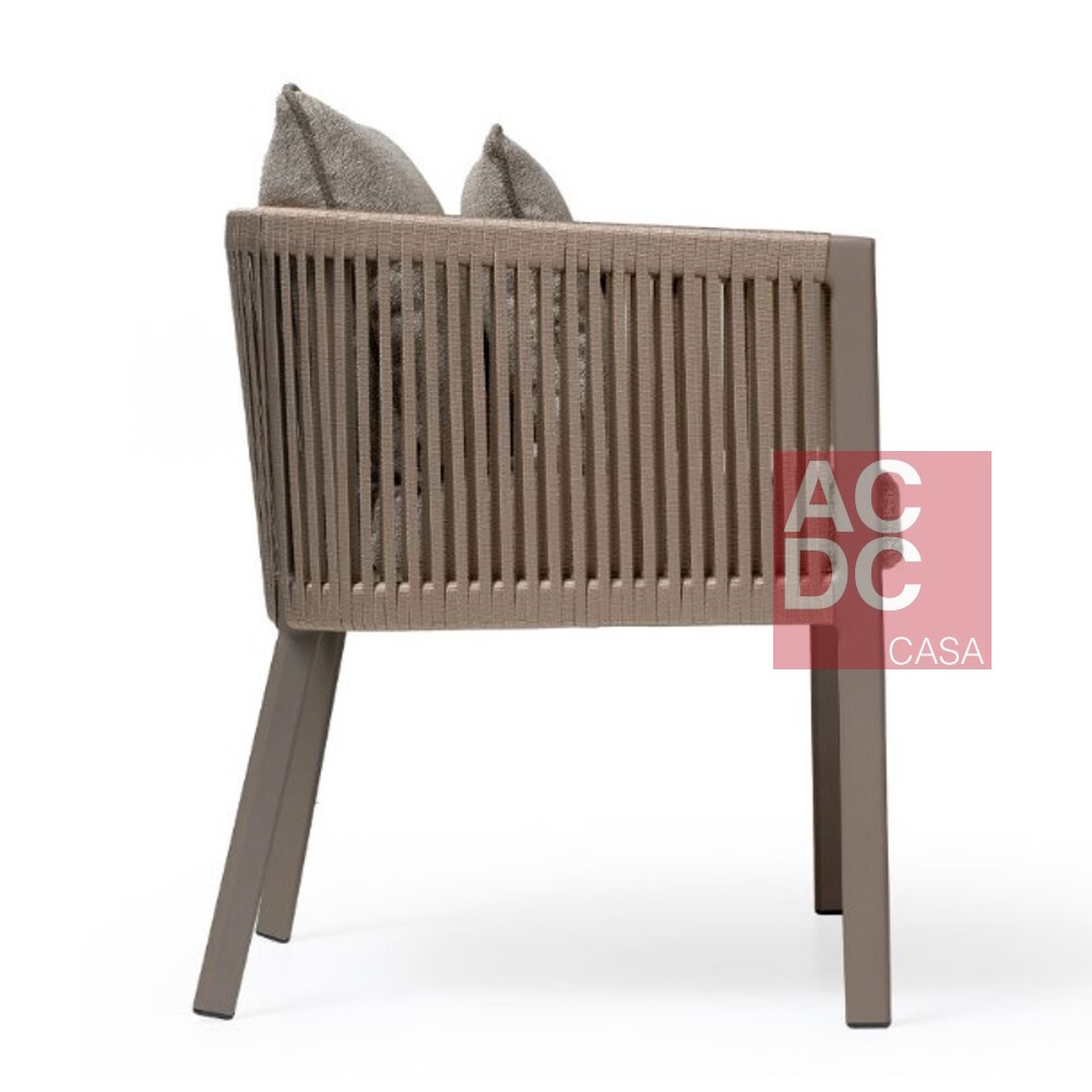Seu estofamento, possui características sintéticas e revestimento próprio para área externa, permitindo que o móvel fique exposto a diversas condições climáticas.