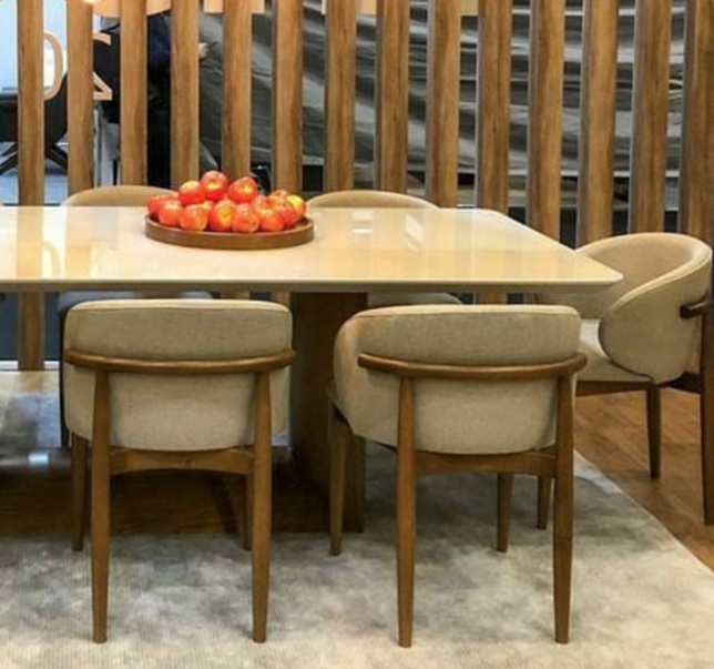 Material: Estrutura em Madeira com detalhe, em cinamomo e assento e encosto estofados.