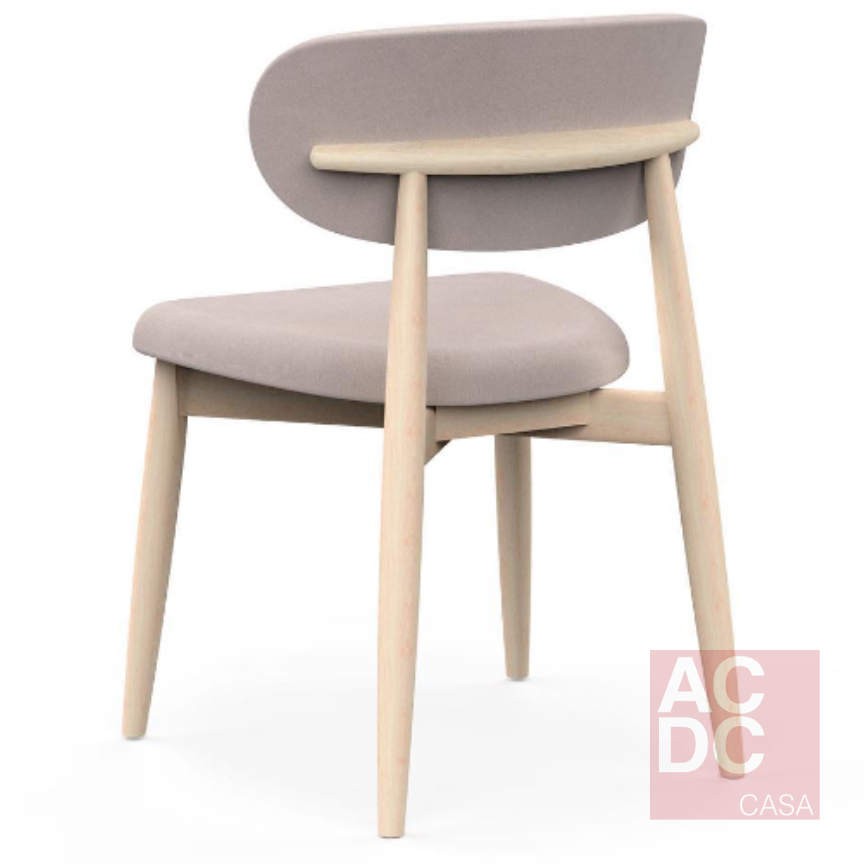 Material: Estrutura em madeira maciça de eucalipto e encosto em MDF ergonômico estofado com espuma de boa densidade e revestida com tecido.