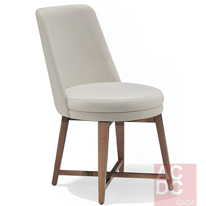 Material: Estrutura em madeira com assento e encosto estofados. Base giratória.