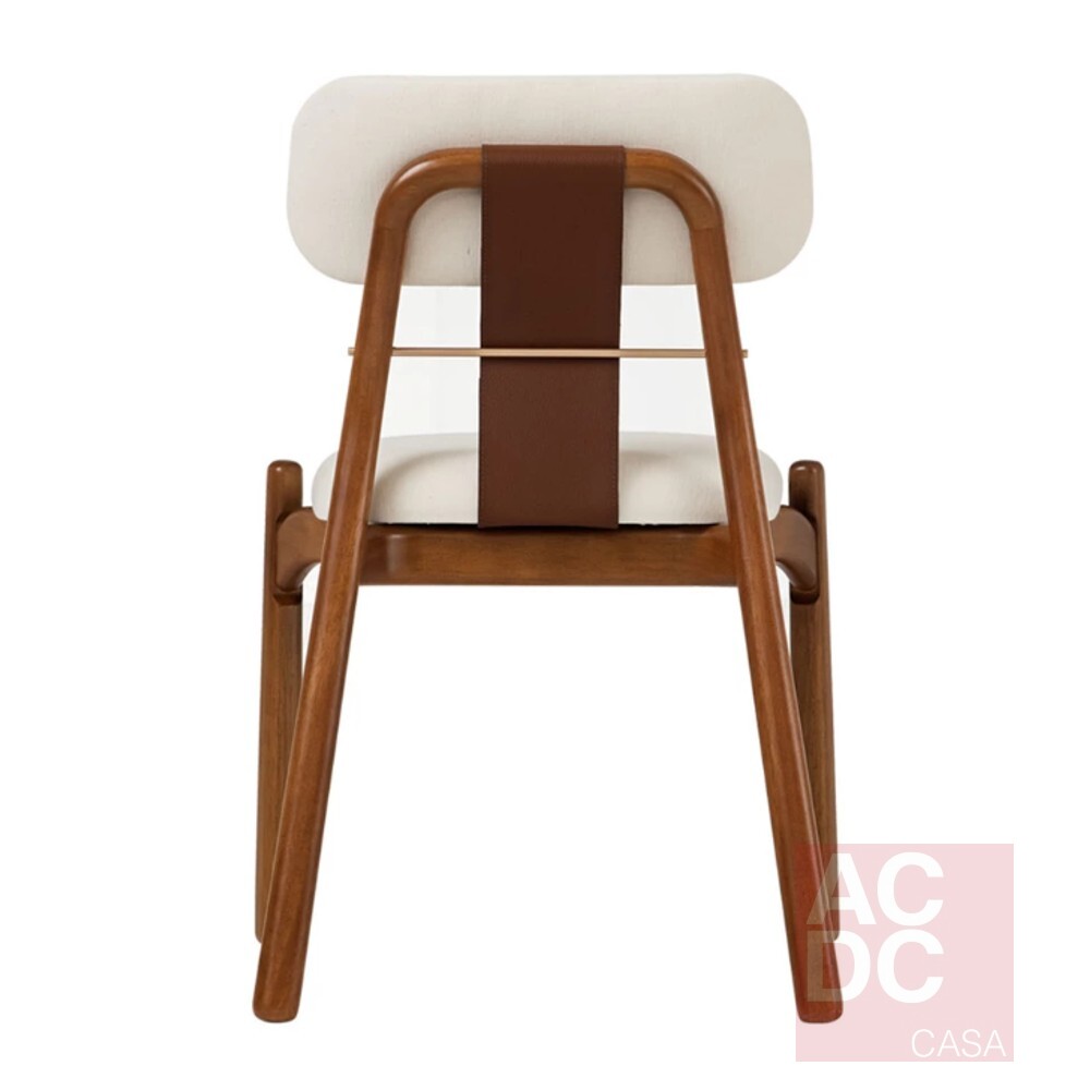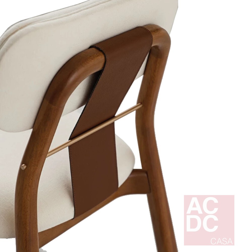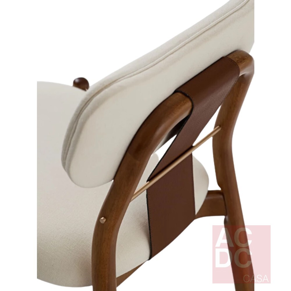 Material: Estrutura em madeira, estofada em tecido e detalhes em couro e metal