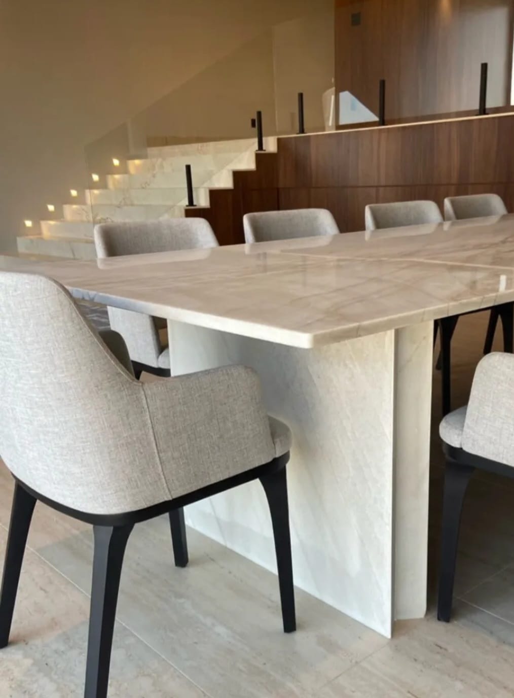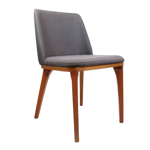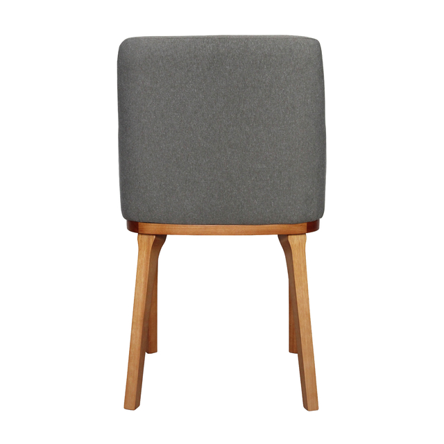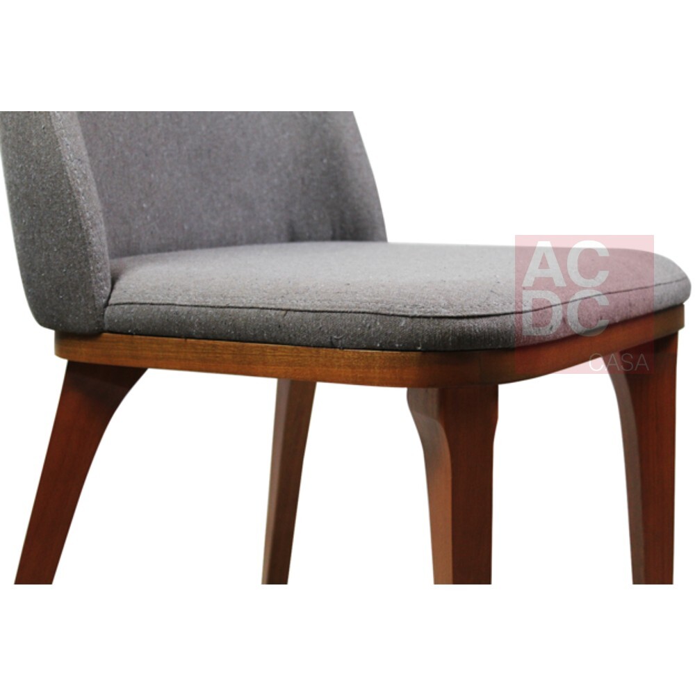 Material: Base em madeira maciça tingida, tecido 100% poliéster, concha inteira para assento e encosto, com encosto levemente arqueado para maior ergonomia. Encosto e assentos estofados com espumas que fornecem alto grau de conforto.