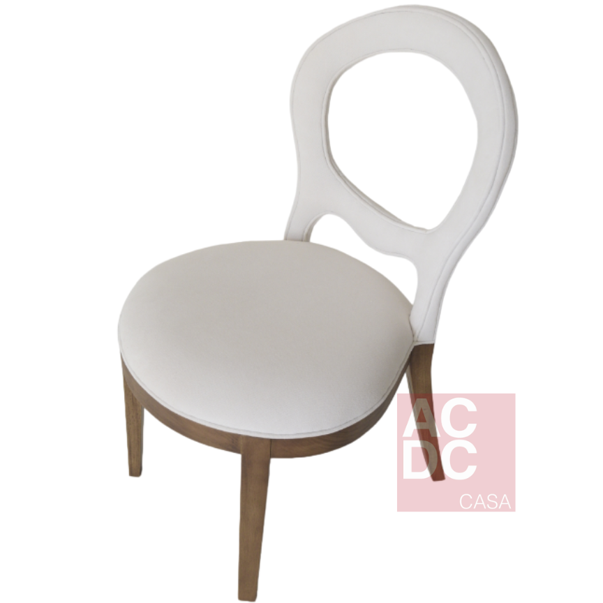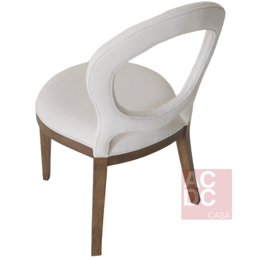 Material: Estrutura de madeira, assento e encosto estofados, base madeira