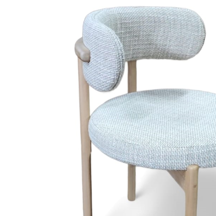 Material: Estrutura em madeira maciça e estofada no assento e encosto
