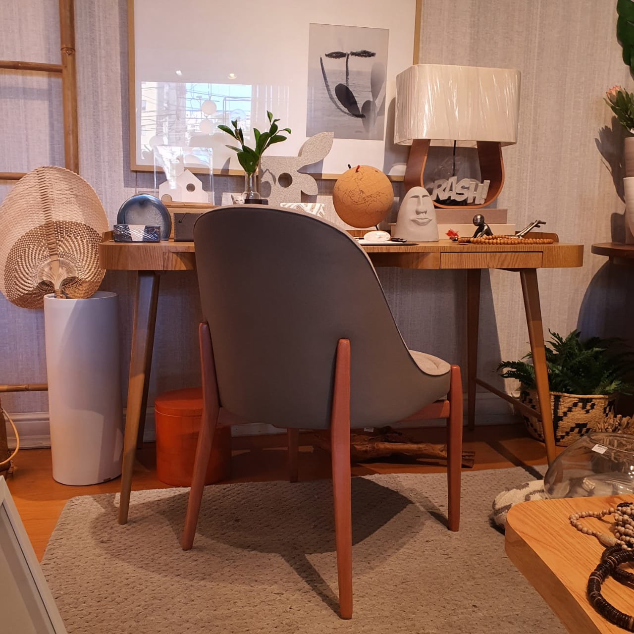 Material: Estrutura em madeira, estofada em linho assento em couro sintético