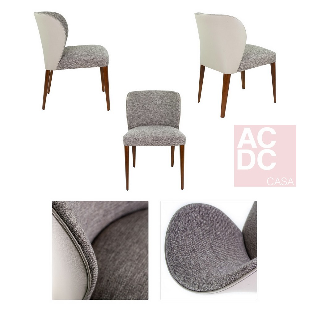 Material: Cadeira com estrutura em madeira, encosto e assento estofados em tecido, e costas estofada em Pu