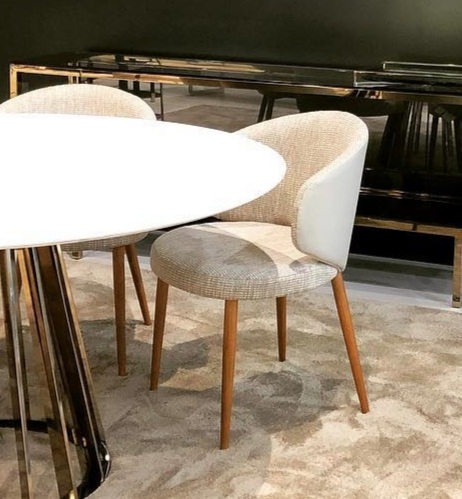 Material: Concha estofada em tecido cru, base Aço Carbono, pintura prata – leve braço