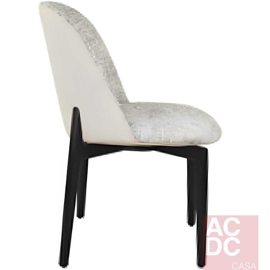 Material: Estrutura em madeira ebanizada, estofada, assento e encosto