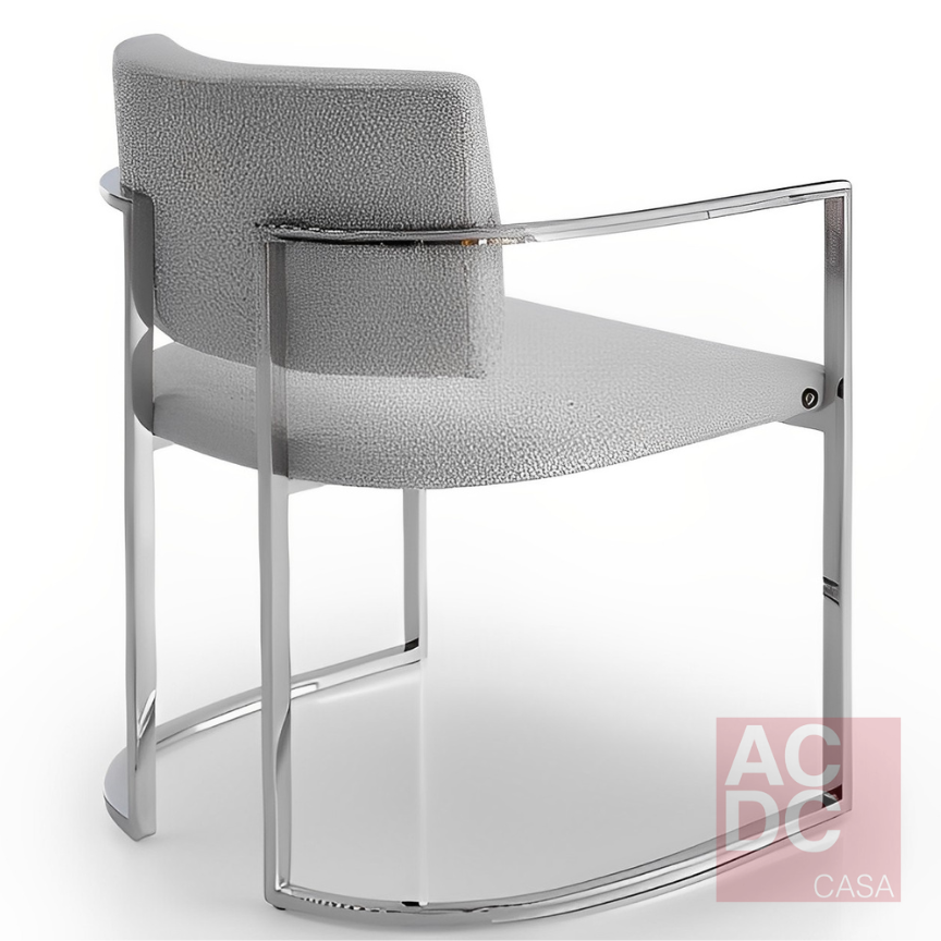 Material: Estofada em linho bege, estrutura em aço inox polido