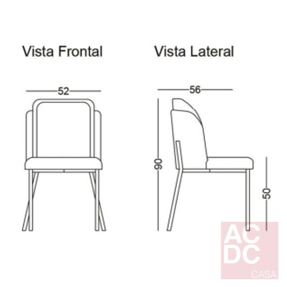 Medida Unitária: Altura: 90 | Largura: 52 | Profundidade: 56 cm | Altura Assento: 50 cm