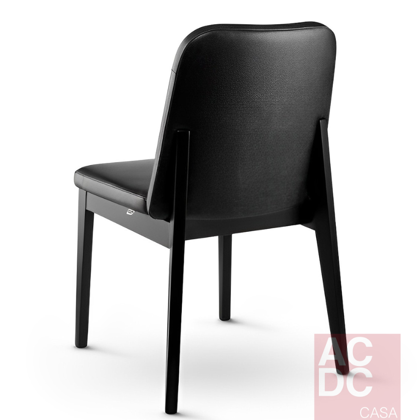Material: Estrutura madeira Jequitibá, acabamento Jequitibá ébano, encosto anatômico com costura. Espuma do assento D30 SOFT e espuma do encosto D26.