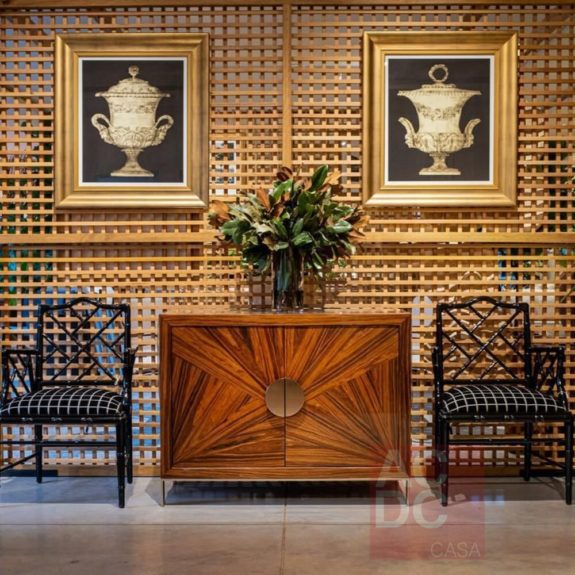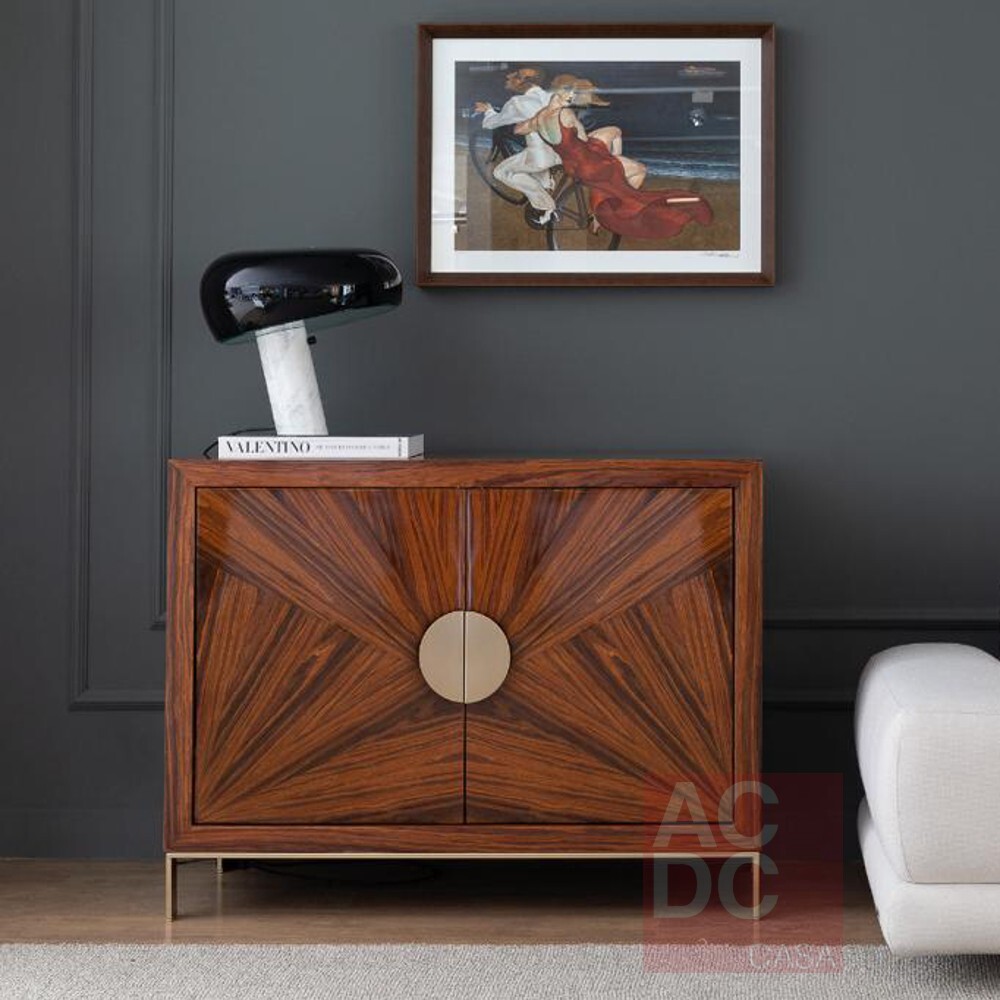 Material: Lamina Pau ferro ou ébano macassar – 02 portas e 02 gavetas internas
