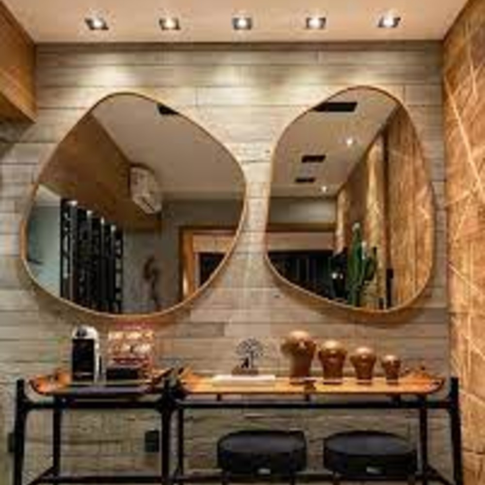 Material: Espelho decorativo em formato orgânico com moldura em madeira natural.