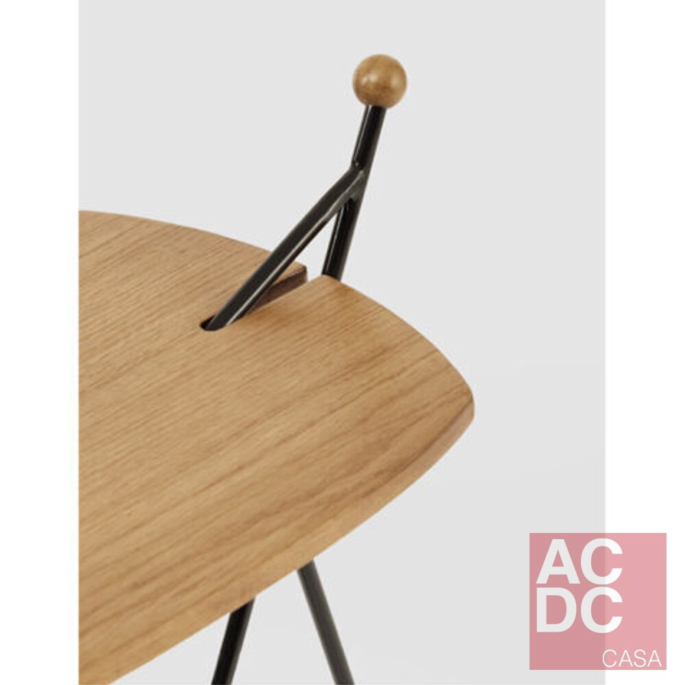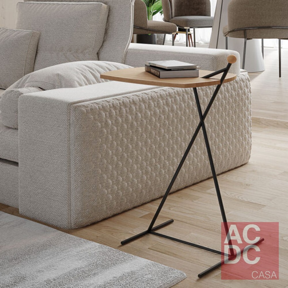 Material: Possui tampo de MDF revestido com lâmina natural de madeira, pés em aço carbono e ponteira de madeira maciça.