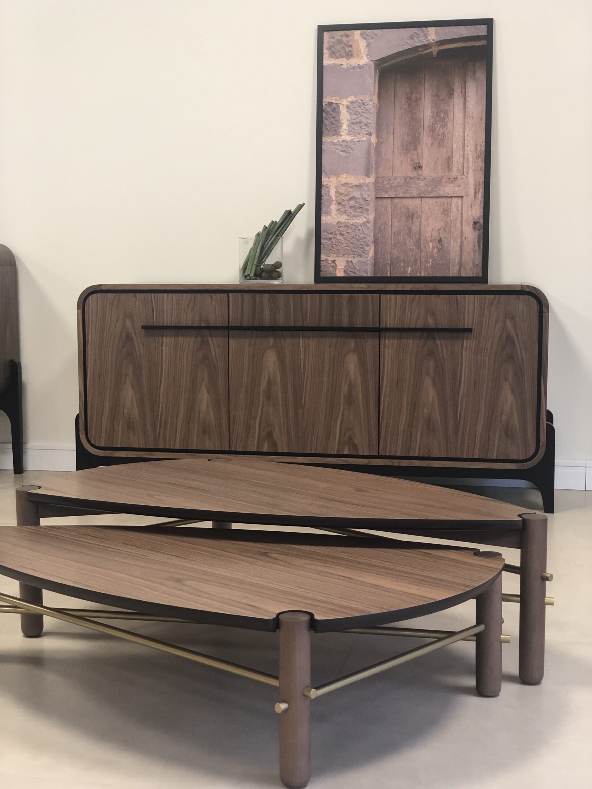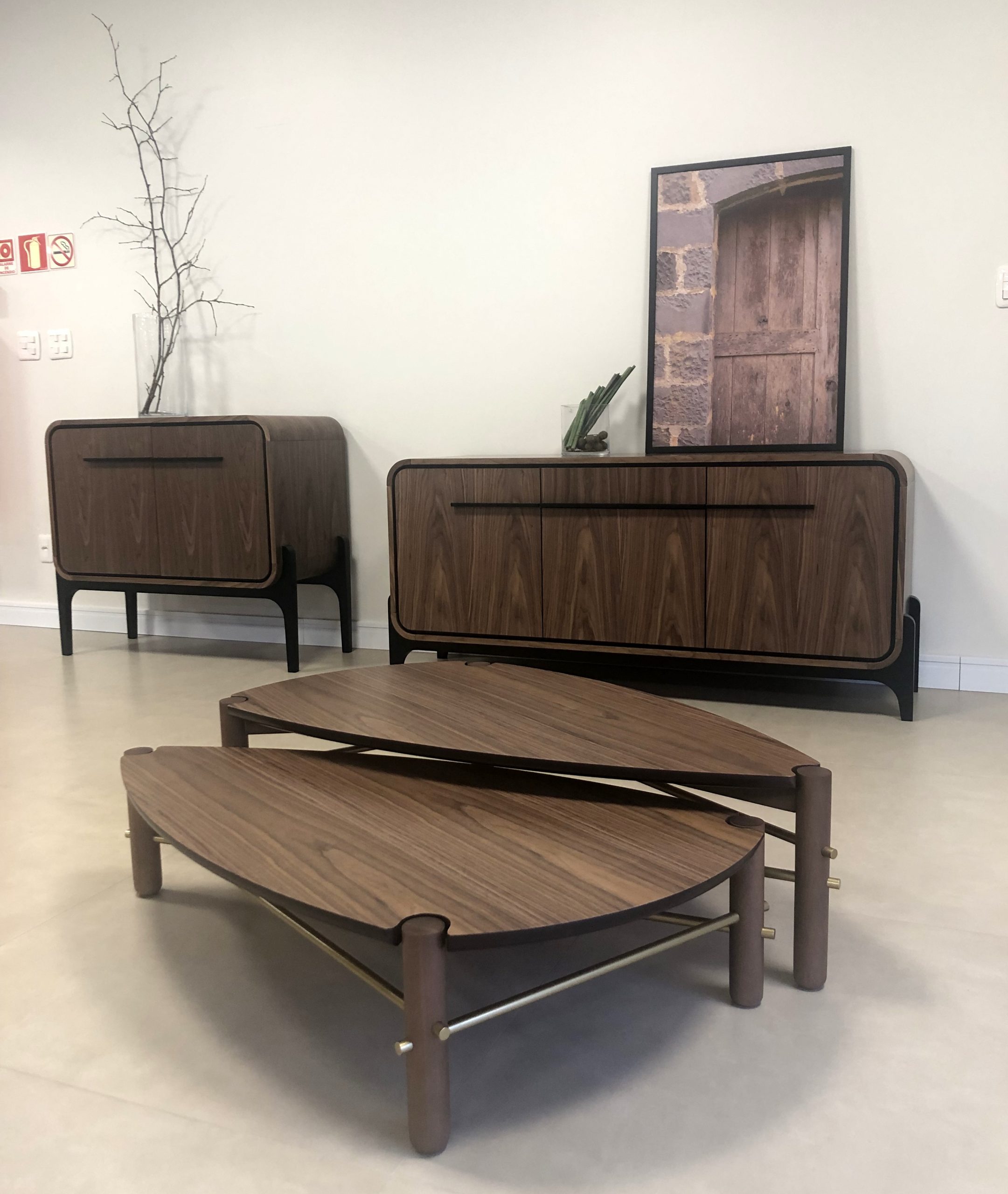 Material: Tampo Laminado com pés maciços e detalhes em metal