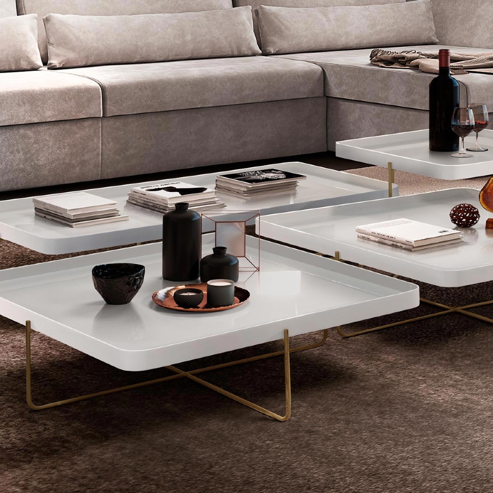 Material: Tampo em MDF laqueado e pés de aço carbono pintado.