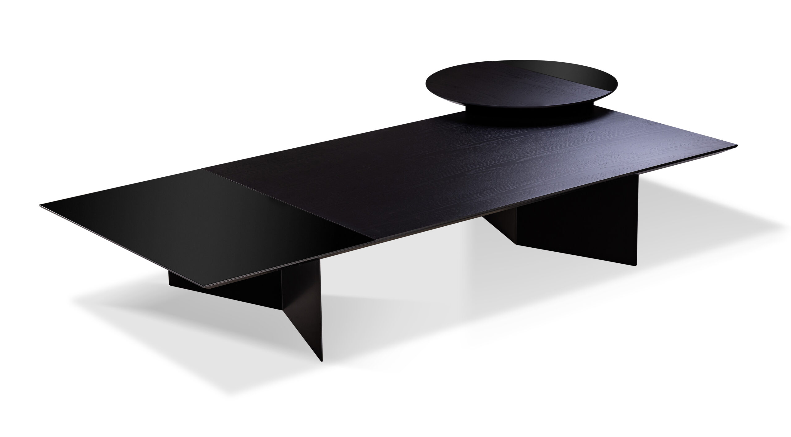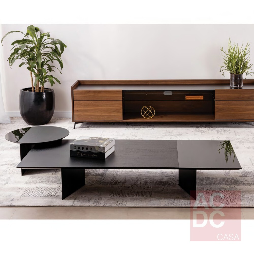 Material: Tampo em mdf Laminado Carvalho com pintura acetinada, base e detalhe do tampo em Vidro