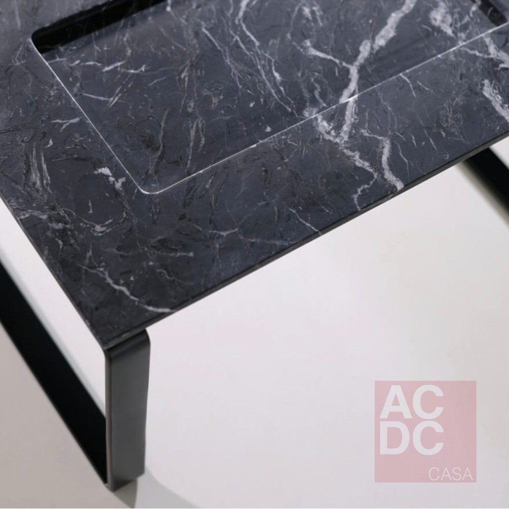 Estrutura sempre laqueada fosco e Tampos de Mármore (Carrara / Marrom Imperial / Nero Portoro / Travertino e Verde ), Revisteiro em Recouro. TODOS AS CORES DE MARMORE POSSUEM O MESMO VALOR.