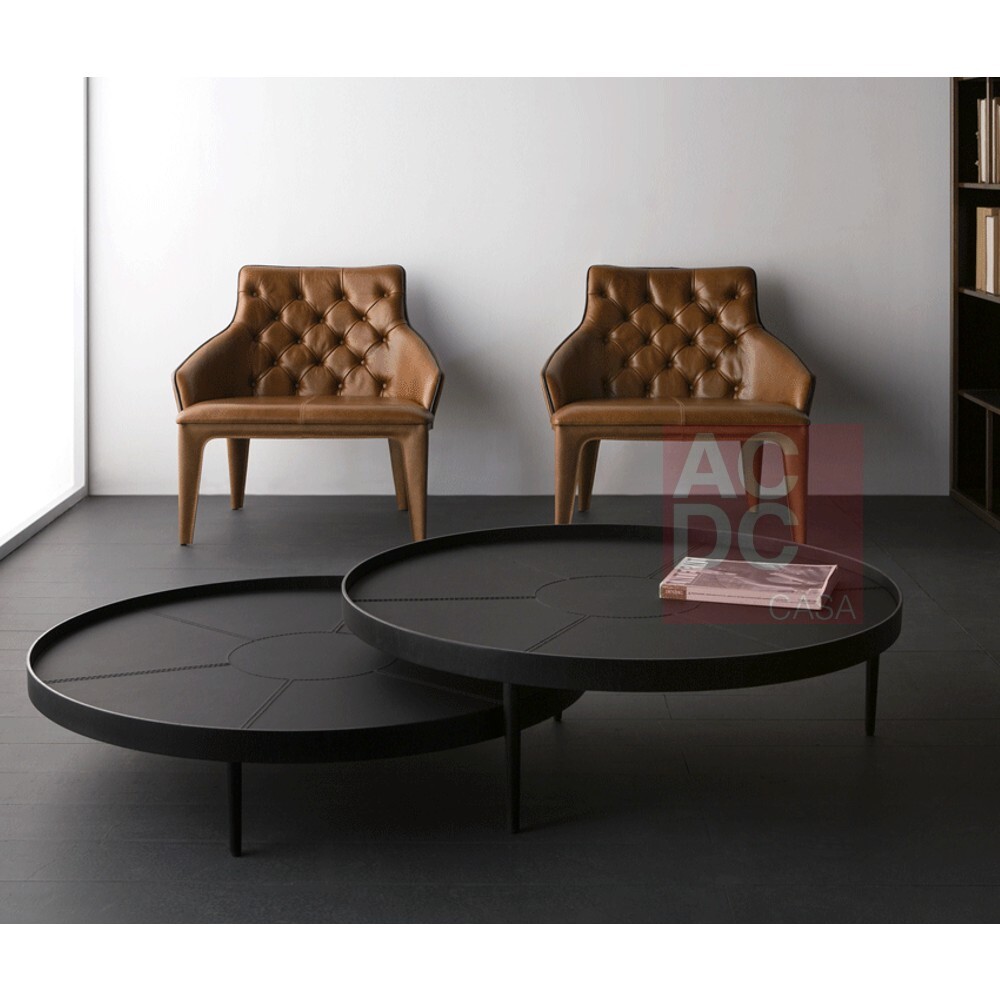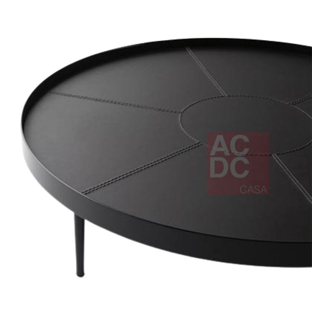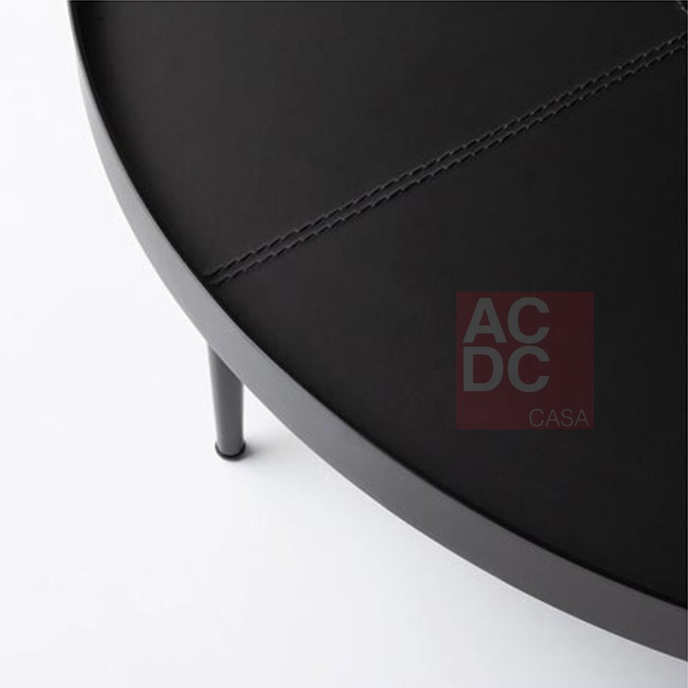 Material: Estrutura em metal laminado ebanizado com tampo em couro reconstituído liso cinza